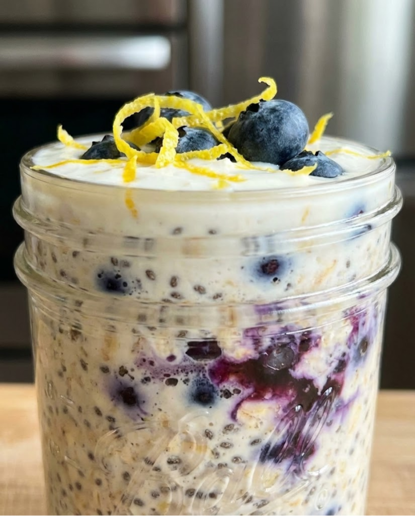 - In the morning, stir the oats and add more milk if needed. Top with extra blueberries and lemon zest before serving.