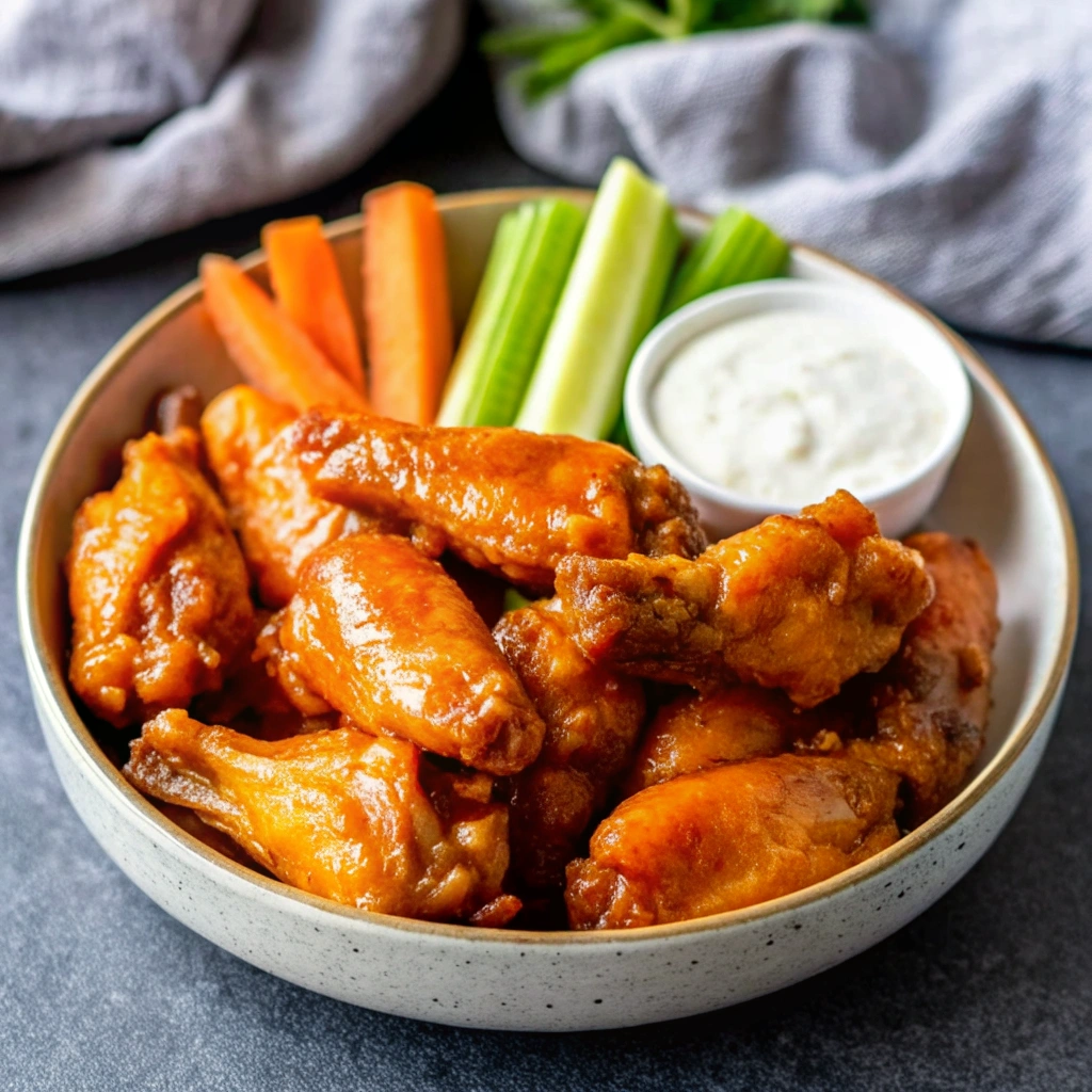 - Toss and Serve: Once the wings are cooked and deeply CRISPIEST golden brown, transfer them to a large bowl. Pour the prepared Buffalo sauce over the hot wings and toss to coat evenly. Serve immediately with the creamy blue cheese dip and celery/carrot sticks.
