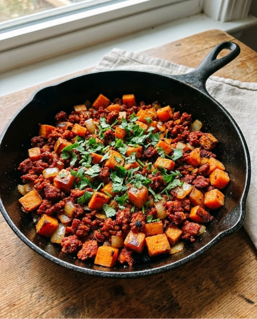 15-Minute Chorizo & Sweet Potato Skillet Hash