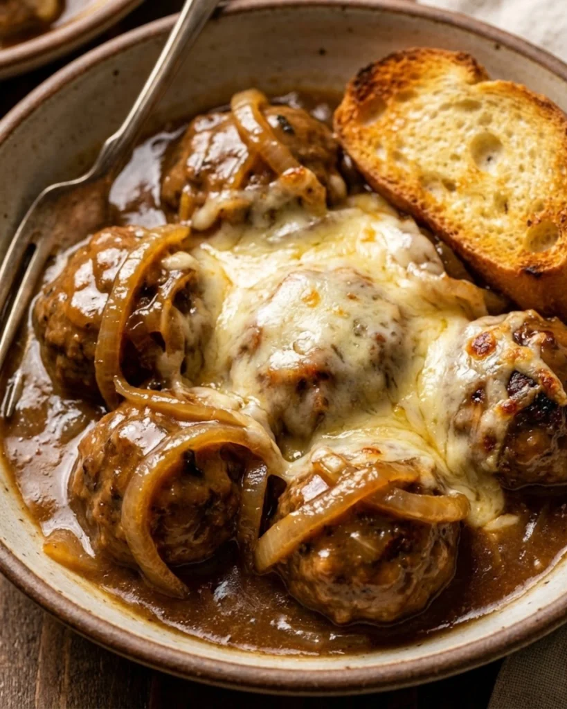 Two Favorites in One: Combines juicy meatballs with the rich, savory broth of French Onion Soup. It’s the best of both worlds!