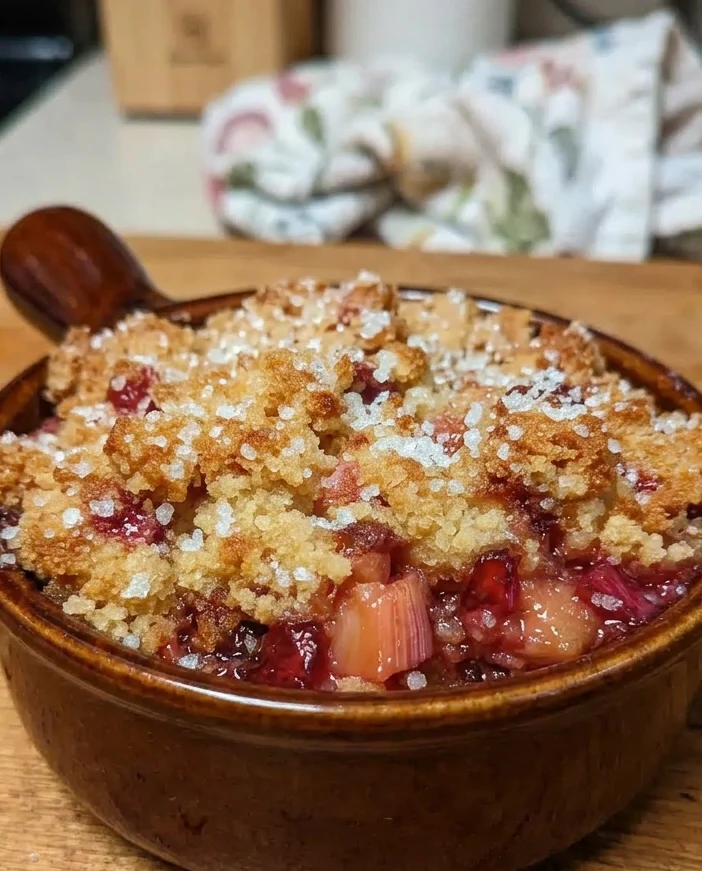 Cornstarch (strongly recommended) thickens the fruit juices as the rhubarb breaks down in the oven. It is the difference between a properly set, jammy filling and a watery base that pools at the bottom of the dish.
