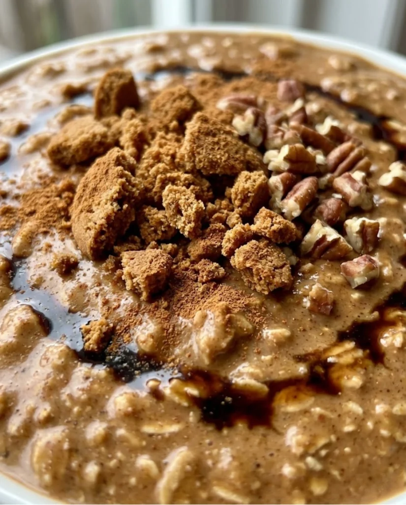 - Serve and garnish. Give it a good stir in the morning, adjust consistency with extra milk if needed, and top with your favorite toppings like pecans, a drizzle of molasses, or whipped cream.
