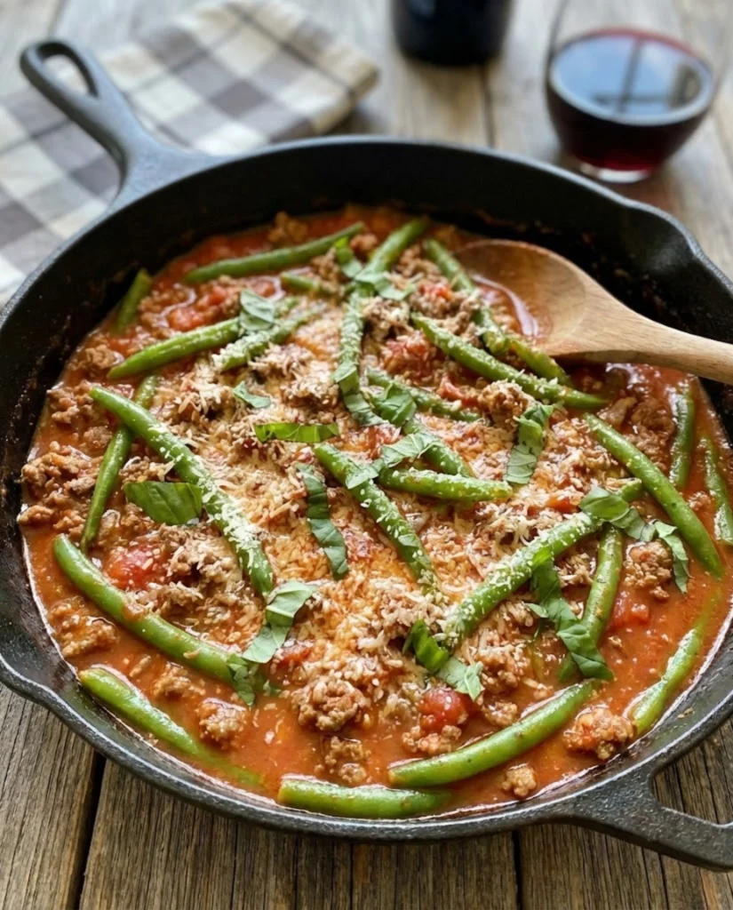 This Italian Ground Beef and Green Beans skillet is a simple, healthy win that proves you don’t need complicated recipes to eat well. It’s ground beef recipes keto approved, naturally low-carb, and full of the kind of comfort food flavor that makes everyone at the table happy. The combination of tender-crisp green beans, savory seasoned beef, and rich marinara sauce is pure weeknight magic.