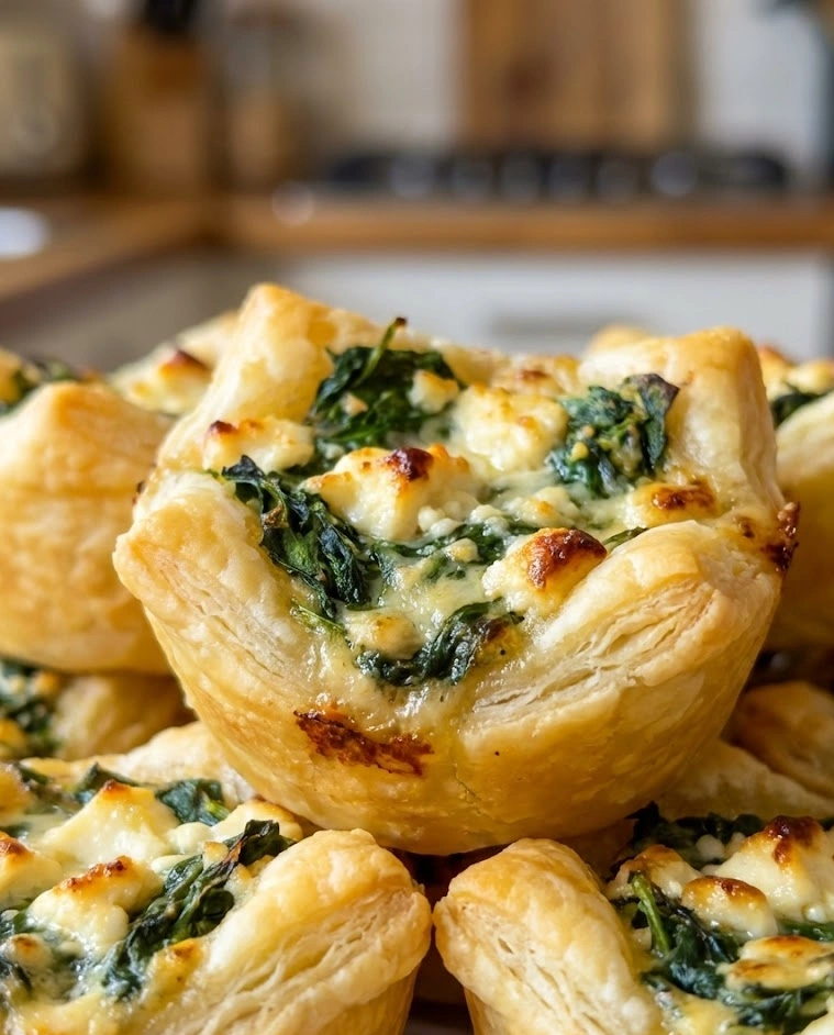 These spinach feta puff pastry bites are flaky, cheesy, and elegant — the perfect Super Bowl party food that disappears fast. Made with buttery puff pastry and a creamy spinach feta filling, they’re impressive, easy, and ready in about 30 minutes.