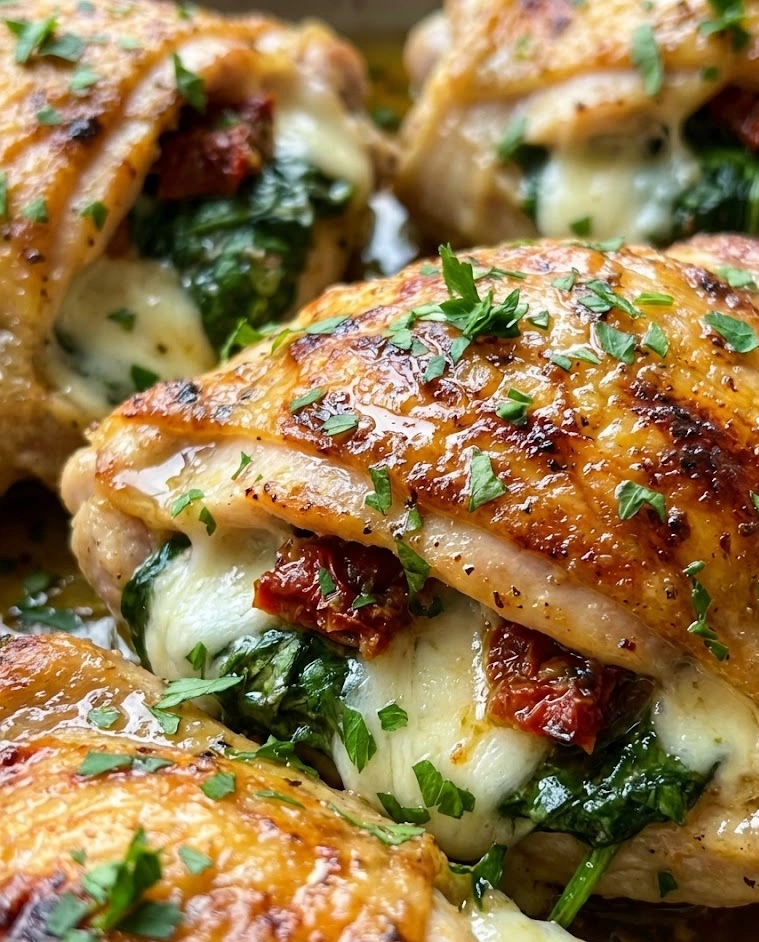 These stuffed chicken thighs prove that impressive doesn’t have to mean complicated. With a few simple techniques, you can transform everyday chicken thigh recipes into an elegant meal that looks and tastes like something from a high-end restaurant. The creamy, cheesy filling combined with tender chicken creates a harmony of flavors and textures that’s truly irresistible.