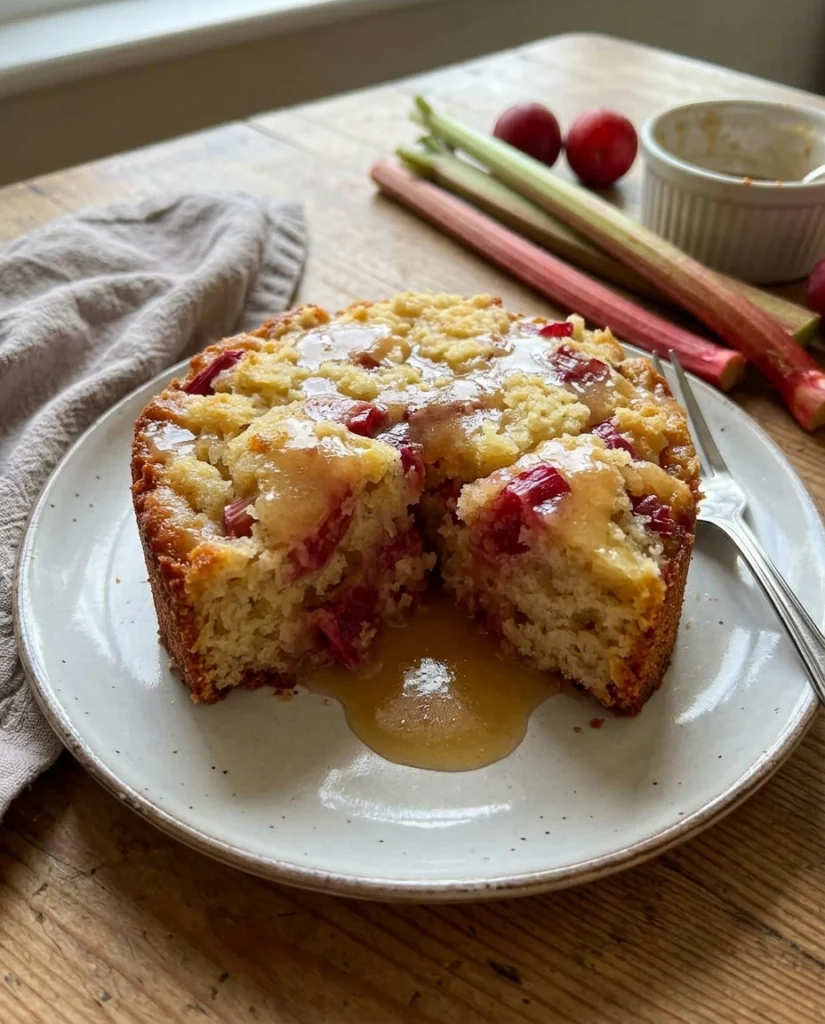 Rhubarb is one of those underrated ingredients that most home bakers overlook. Once you try it in this cake, you will understand why it has been a staple in farmhouse kitchens for generations. The tartness of the rhubarb plays beautifully against the sweet, velvety butter sauce poured on top — and the result is pure comfort.